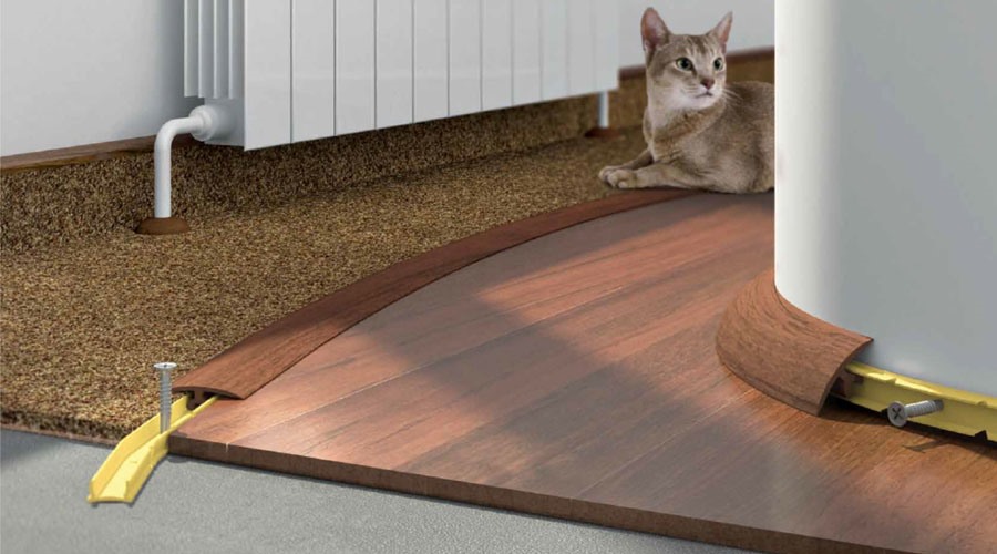 Meistens werden solche Produkte verwendet, um verschiedene Arten von Bodenbelägen zu kombinieren, zum Beispiel Linoleum mit Teppich.