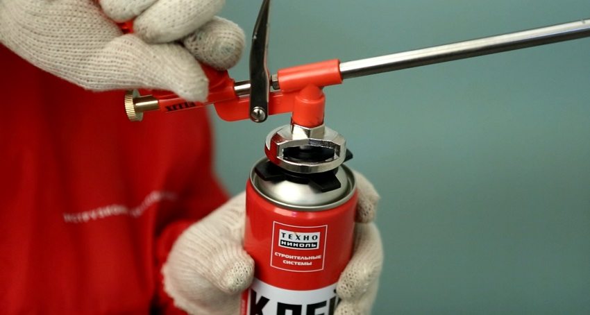 - Als nächstes sollten Sie eine gleichmäßige Schicht Montageschaum legen.