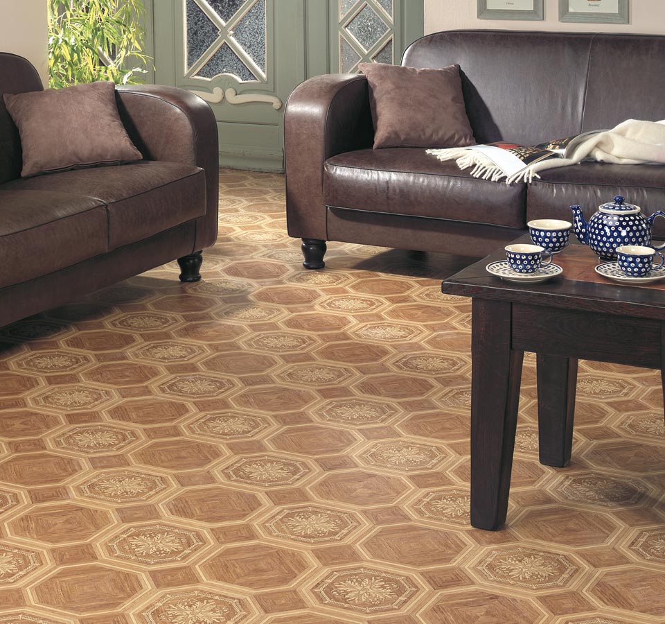 Die Wahl der Farben des Bodenbelags betrifft hauptsächlich den Innenraum. Nahezu jede stilistische Lösung passt zu Linoleum, dessen Ornament Parkett nachahmt. Sinteros bietet auf seinen Produkten ein Muster an, das die Beschaffenheit verschiedener Holzarten wie Eiche, Buche und Wenge vermittelt.