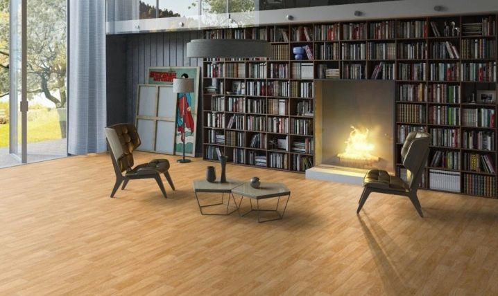 - Eine separate Art von Bodenbelag kann unterschieden werden homogenes Linoleum. Es ist eine homogene Struktur, deren Grundlage Polyvinylchlorid ist. Im Produktionsprozess werden dort verschiedene Komponenten eingeführt, zum Beispiel Kreide oder Quarz, die ein Ornament bilden. Aufgrund der Tatsache, dass die Partikel die gesamte Dicke des Produkts durchdringen, wird die Zeichnung während des Betriebs gleichmäßig gelöscht und Linoleum verliert sein ursprüngliches Aussehen nicht. Dies ist eine gute Option für Bodenausrüstung in Verkaufsräumen, Bildungseinrichtungen. Ein weiteres Merkmal dieser Beschichtung ist, dass Verschmutzung aufgrund des chaotischen Musters weniger auffällig ist.