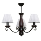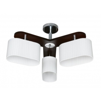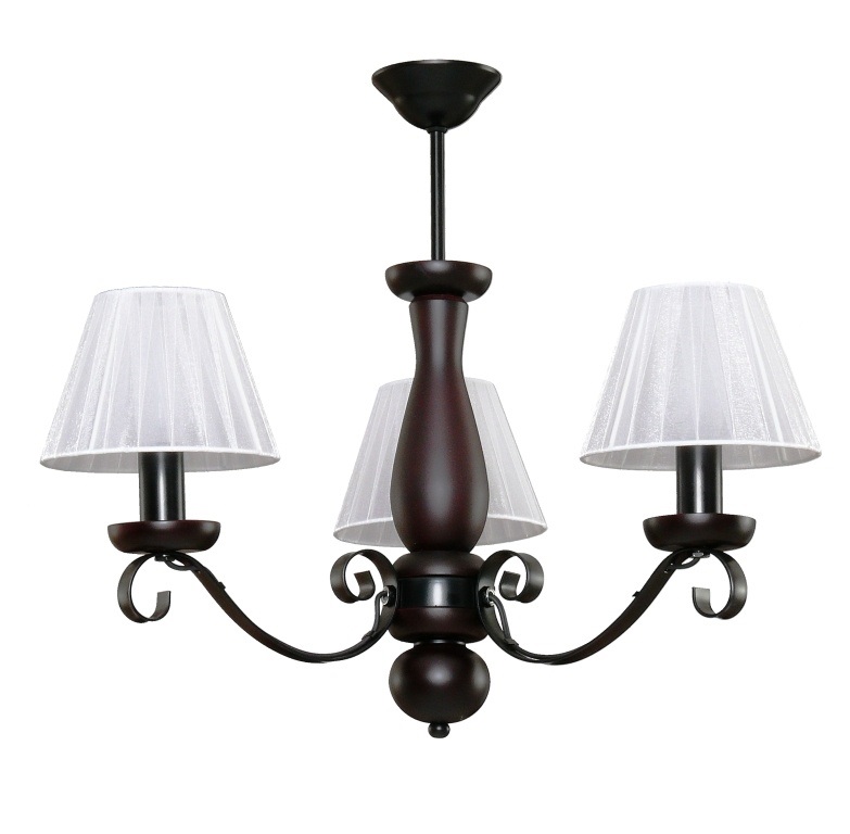 Dekorelemente sind aus Holz in Schwarz, die gleichen Farbtöne werden bei der Herstellung von Metallbeschlägen verwendet. Deckenleuchten sind weiße Stoffe. Es werden drei Glühlampen benötigt, die für eine E14-Basis mit einer Kapazität von bis zu 60 Watt geeignet sind. Schutz gegen Feuchtigkeit und Staub ist 20 IP. Die Beleuchtungsfläche ist nicht sehr groß - 9 Quadratmeter, aber es ist genug für einen durchschnittlichen Raum.