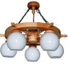 Die Leuchtfläche der Lampe "Tavern 10077-3L" beträgt 9 Quadratmeter. Für größere Räume ist es besser, das Modell zu wählen "Taverne 10077-5L". Sie hat nicht 3 Lampenschirme, wie der vorherige Kronleuchter, aber nicht weniger als fünf; Die Beleuchtungsfläche beträgt bereits 15 Quadratmeter. Der Preis ist etwas höher, etwas mehr als 6 Tausend Rubel. Alle vorgestellten Deckenleuchter aus der Serie "Tavern" haben Beschläge aus Metall, Stoffdeckenlampen und dekorative Details aus Holz. Glühlampen benötigen eine Leistung von 60 Watt.