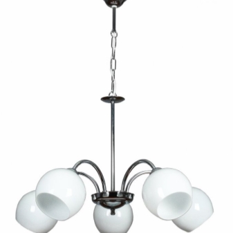 In der Serie "Zypern" sind Modelle mit unterschiedlicher Anzahl von Lampen. Die fragliche Lampe, fünf von ihnen, nach der Anzahl der Lampenschirme aus Glas in beige Farbe. Schwarze Metallbeschläge. Glühlampen für die E14-Basis sollten nicht höher als 60 Watt sein. Die Spannung wird 220 Volt benötigen.