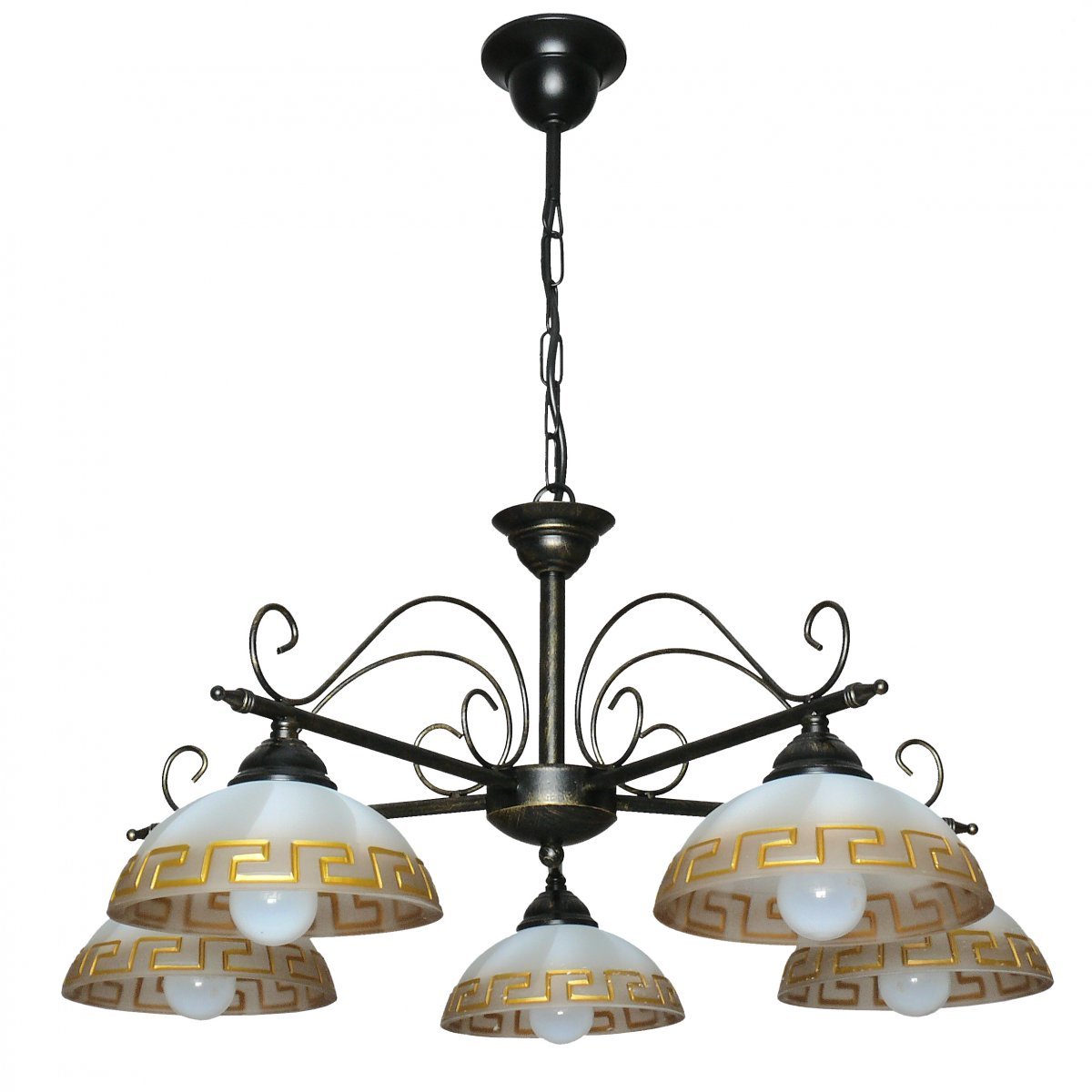 Liebhaber des Exotischen, des Altertums und der Antike werden den hängenden Kronleuchter lieben. "Zypern 10065-5L" vom russischen Hersteller "Aurora". Die Kosten für ein solches Produkt Übersee-Design beträgt fast 8,5 tausend Rubel. Ein gewisser Chic und Charme fügen den Lampenschirmen ein goldenes dekoratives Muster hinzu und erinnern uns an die Kultur und Traditionen des antiken Griechenlands.