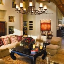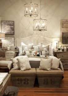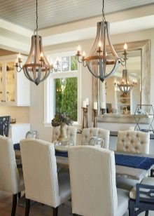 Um den Stil des Landes zu ergänzen, produzieren viele Hersteller große Kronleuchter mit einer Vielzahl von Metall- und Holzelementen, stilisierte Antike, viele von ihnen können mit teuren Schmieden verziert werden. Kronleuchter im Landhausstil und Provence werden dazu beitragen, eine ideale und romantische Atmosphäre im Haus für ein junges Paar zu schaffen.