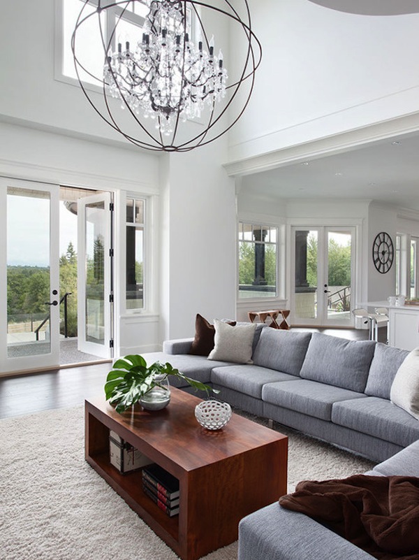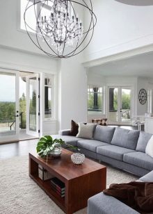 Wenn die Fläche des Raumes groß ist, aber die Möbel nicht so viel sind, empfehlen die unterschiedlichsten Spezialisten, die Räume zu dekorieren, mit Hilfe von großen und dreidimensionalen Modellen von Kronleuchtern, die leicht zu einem Highlight in einem solchen Interieur werden können. Aber wenn die Raumfläche sehr klein ist, ist es besser, die Gesamtmodelle zugunsten von Miniaturmodellen aufzugeben.