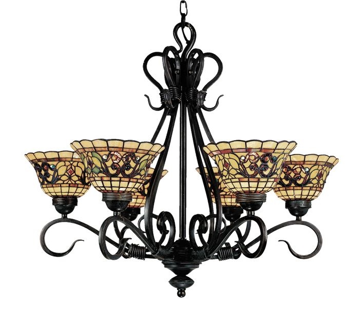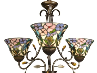 Kronleuchter im berühmten Stil Tiffany Mit luxuriösen Buntglasfenstern werden auch sehr oft große Formate hergestellt. Solche Produkte können in großen Wohnungen untergebracht werden, denen die Raffinessen und der Luxus fehlen.