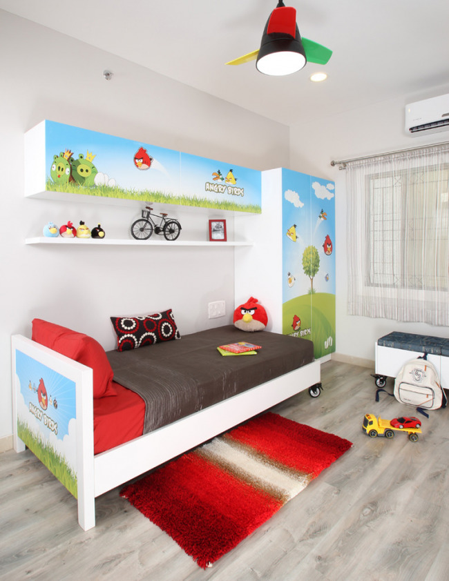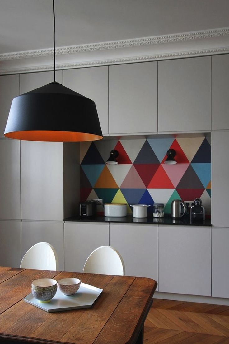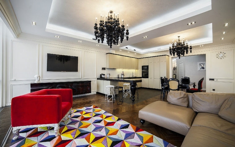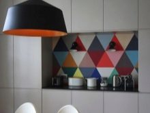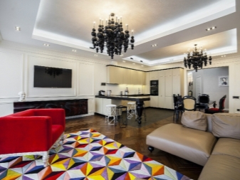 Wenn es im Raum viele helle Farben gibt, wird ein zu großer schwarzer Kronleuchter dort wohl überflüssig erscheinen. Wenn Sie den bunten Innenraum mit einem so düsteren Accessoire verdünnen, sollte es nicht zu groß sein. Oder wählen Sie eine Lampe, die aus mehreren farbigen Blöcken besteht oder durch mehrfarbige Anhänger ergänzt wird.
