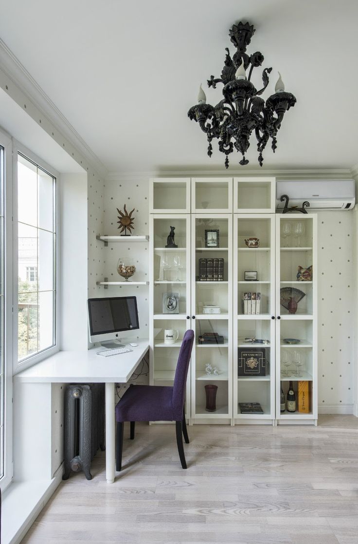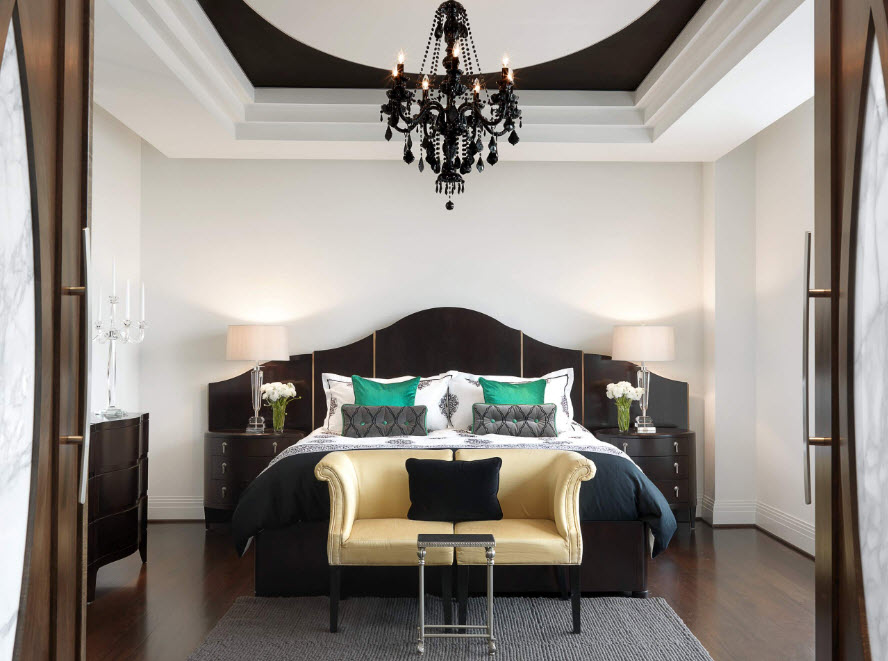 Wie bereits erwähnt, passt der schwarze Kronleuchter perfekt in den Innenraum im klassischen Stil. Tiefe und reiche Farbe ist perfekt mit Kaffee, Grau oder Weiß kombiniert. Silber- und Golddetails werden nicht überflüssig sein. Solch ein ruhiges Interieur ist entspannend, so dass diese Farbkombinationen oft im Design des Hauses verwendet werden.