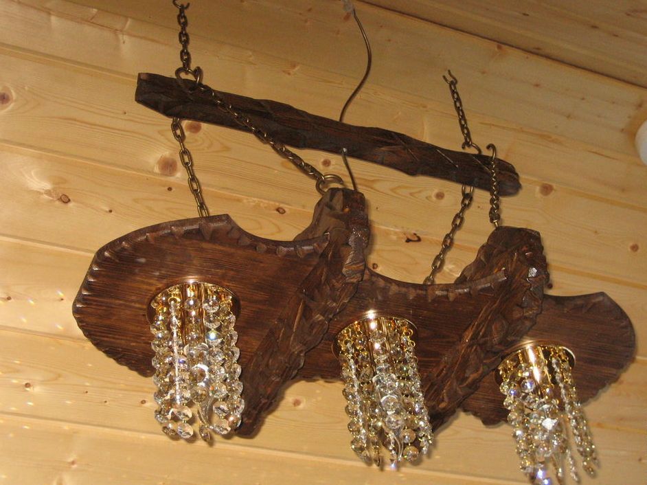 Und wenn Sie etwas einfacheres wollen, dann können Sie eine Lampe mit einer Basis aus Holz, schwarz lackiert nehmen. Solch ein einfacher Kronleuchter sieht ziemlich interessant aus.