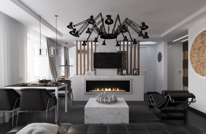 Wenn Sie nicht komplett dunkle Kronleuchter mögen, dann können Sie Farbkombinationen wählen. Schöne schwarz-weiß, schwarz und gold oder schwarz und rot Kronleuchter sehen sehr interessant aus. Ja, und kombinieren Sie mit anderen Teilen des Inneren von ihnen viel einfacher.