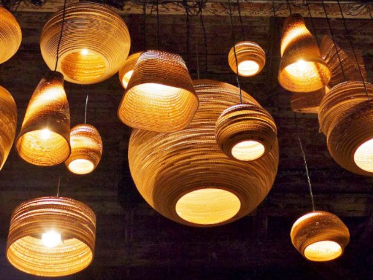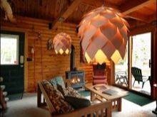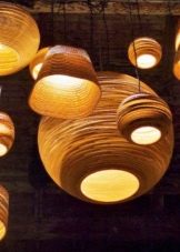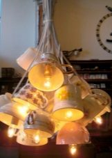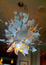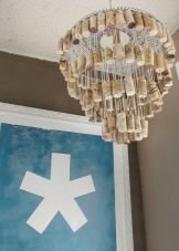 Die Verwendung von ungewöhnlichen, auf den ersten Blick für Kronleuchter, Materialien. Sie können aus Holz, Kunststoff, Stoff, Faden und anderen Abfallmaterialien bestehen;