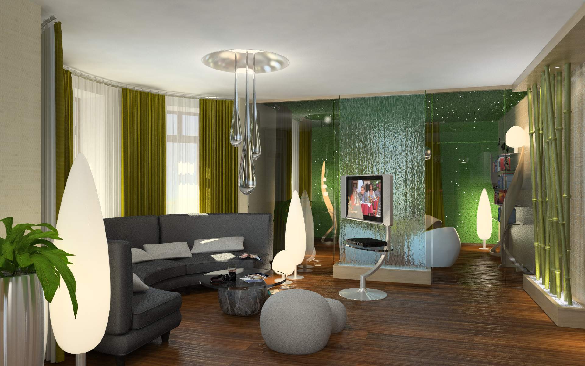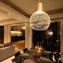 Im Allgemeinen sind Beleuchtungsgeräte für das Wohnzimmer in einem modernen Stil durch ungewöhnliche Materialien, originelles Design, Kürze und Vielseitigkeit gekennzeichnet. Diese Merkmale sind im ecostyle Innenraum gut verfolgt. Da die Basis dieses Stils Natürlichkeit und Helligkeit ist, kann der Kronleuchter aus natürlichen Materialien (Holz,Glas), eine ungewöhnliche Form und eine natürliche Färbung.