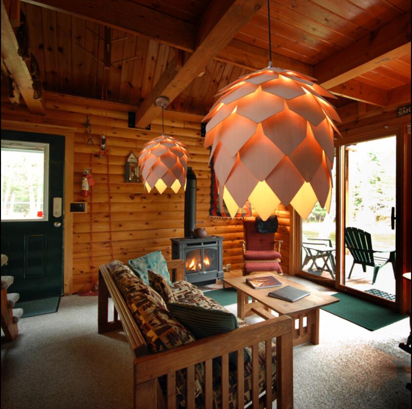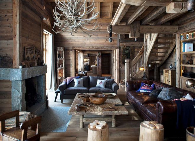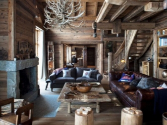 Eine der Arten von Öko-Stil ist das Chalet. Es zeichnet sich auch durch Natürlichkeit, außergewöhnliches Design und Form aus. Ein Deckenleuchter aus Holz oder einem großen Schmiedeeisen passt gut in ein solches Interieur. Es wird nicht empfohlen, helle Farben zu wählen. Es ist besser, sich auf das ursprüngliche Design und die Form zu konzentrieren (zum Beispiel einen Kronleuchter in Form eines Asts).