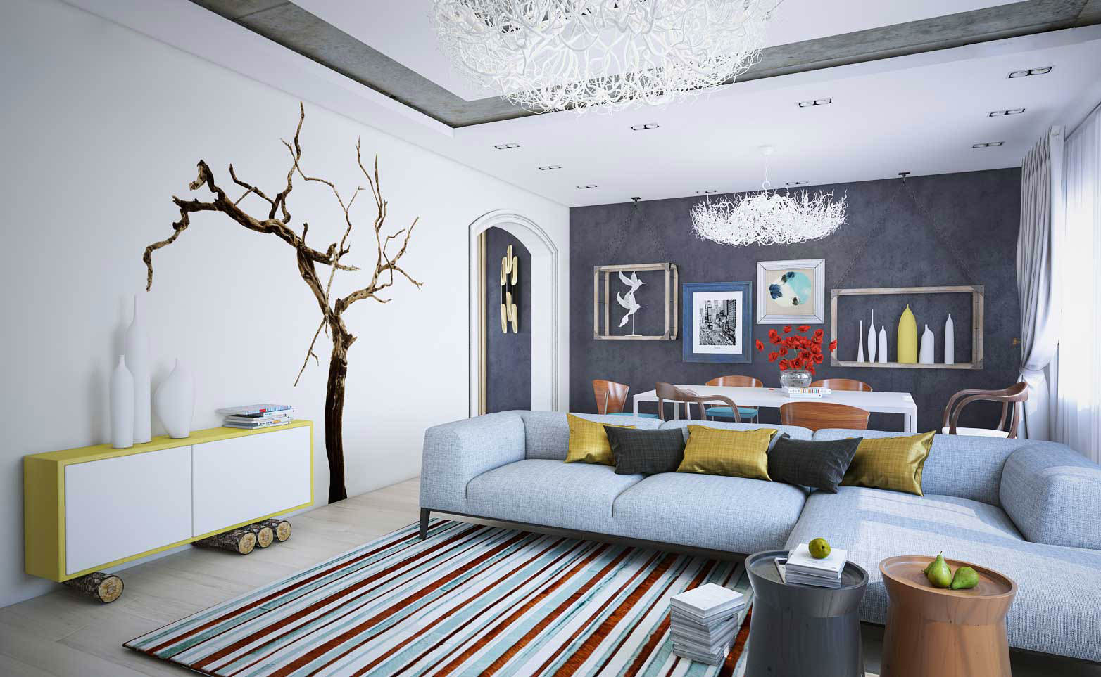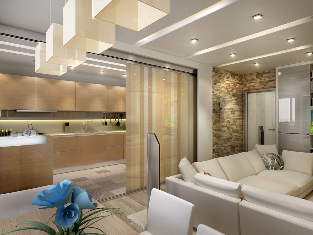 Eine Besonderheit moderner Kronleuchter ist die Raumaufteilung. Jetzt können Sie dank der Beleuchtung Akzente auf die notwendigen Details setzen und von unerwünschten Bereichen ablenken.