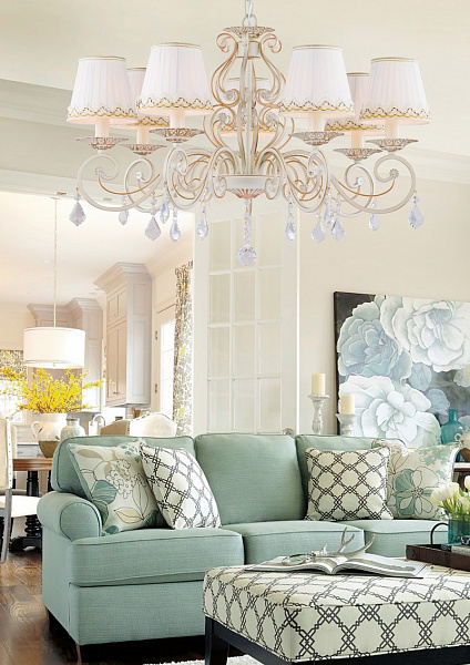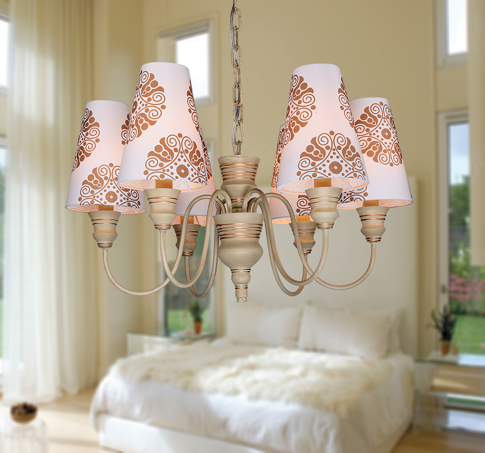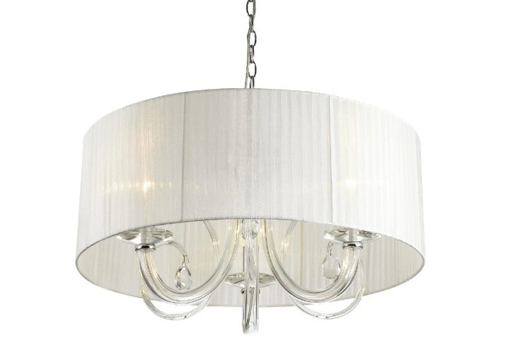 Insgesamt benötigen Sie 6 Glühlampen, passend für die E14-Basis - mit einer Leistung von bis zu 40 Watt. Runde Textildecke in Weiß. Die Armaturen sind verchromt, Metall. Die Kosten für den Kronleuchter Snow 1698-6P liegen etwas über 25 Tausend Rubel.