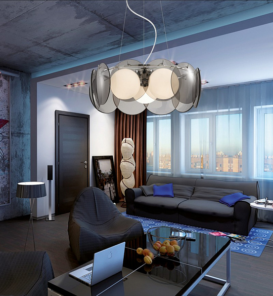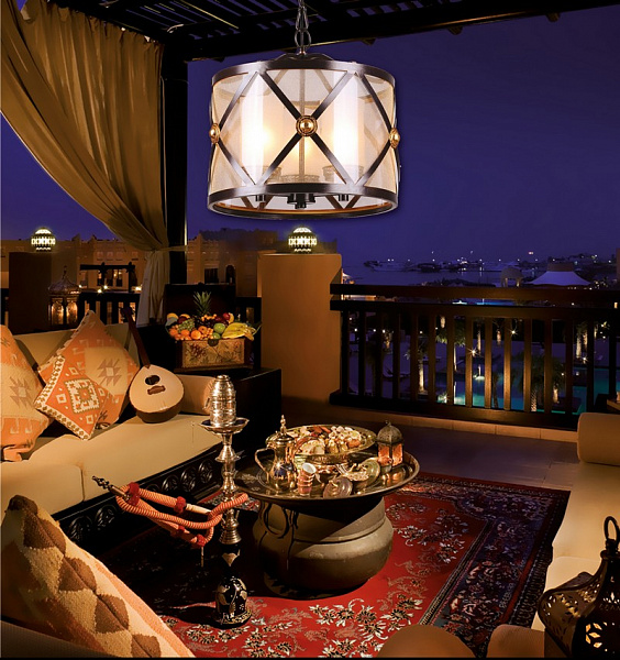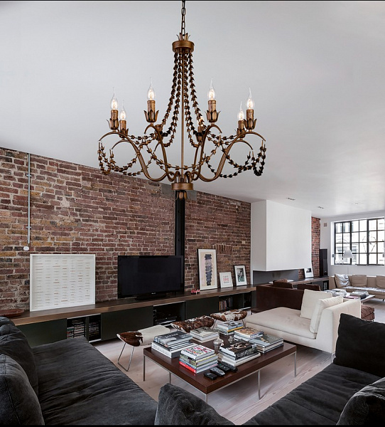 Ein warmes Leuchten für Räume mit einem solchen Kronleuchter ist garantiert. Farbtemperatur variiert von 2600 bis 2900 K. Die Ausleuchtung ist klein, reicht aber für einen kompakten Raum mit wenigen Möbeln und ohne Haufen. Befestigungsmethode - eine Latte.Konstruktionsmaße: Höhe - 750 mm, Durchmesser - 600 mm.