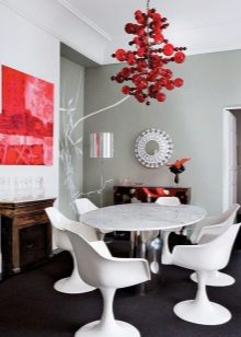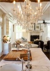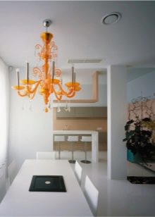 - Natürlich sollte es stilvoll mit dem Raum selbst übereinstimmen. Kronleuchter in modernem Stil passt nicht zum klassischen Interieur. Und in einer modernen Umgebung ist es schwierig, die klassische Form des Kronleuchters anzupassen, obwohl Designer manchmal erfolgreich sind.