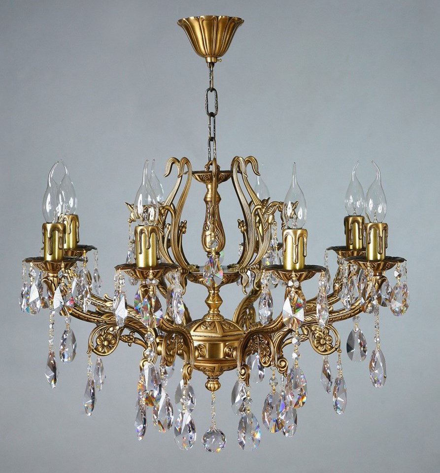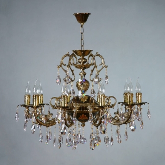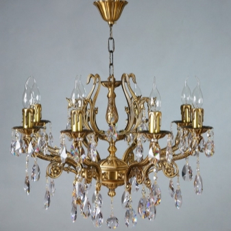 - "Tropfen fallen". Der Kronleuchter ist in der Tradition der spanischen Lampen gemacht. Der einzigartige Glanz von Kristall in Kombination mit Bronze verleiht jedem klassischen Interieur des Wohnzimmers Extravaganz.