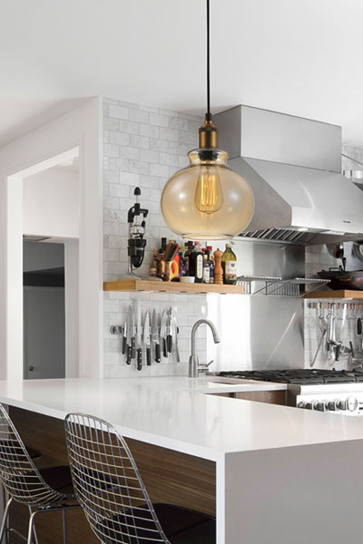 Es kann auch als Hintergrundbeleuchtung verwendet werden. Es wird normalerweise über einem Esstisch, einer Theke oder einer Insel in der Küche verwendet.