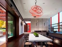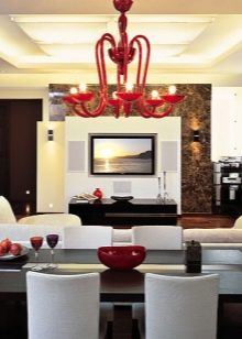Es ist auch gut und angemessen wird bunte Suspensionen in Zimmern für Kinder aussehen. Rot - die Farbe der Leidenschaft, sehr sinnlich, hell, ins Auge fallend.Es eignet sich für ein Wohnzimmer oder eine Küche im barocken Stil sowie für zeitgenössische Designer-Interieurs. Es sollte jedoch daran erinnert werden, dass solch eine auffällige Dekoration die restlichen Objekte im Raum leicht "verfinstern" wird.