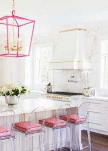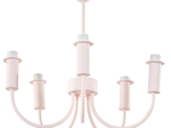Rosa, lila und lila Kronleuchter passen am besten in den Raum des Zimmers für eine kleine Prinzessin. Es ist auch eine gute Entscheidung, sie wieder in der Küche zu platzieren, denn rosa Farbe kann Appetit verursachen. Auch die "appetitanregende" Farbe ist Orange. Außerdem ist er erhebend.