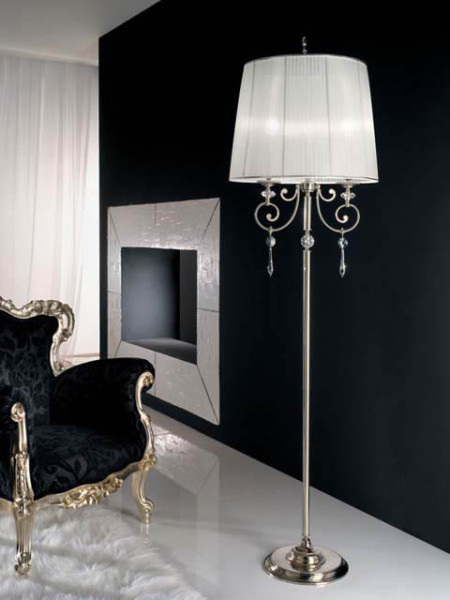 Klassische Stehlampe Sehr beliebt neben dem klassischen Kronleuchter. Es ist am häufigsten in den Vereinigten Staaten von Amerika. Seine Vorteile liegen im breiten Umfang, schönes Design. Eine Stehlampe muss nicht installiert werden, sie kann verwendet werden, um Unzulänglichkeiten in der Raumbeleuchtung zu korrigieren und die Leere darin zu füllen.