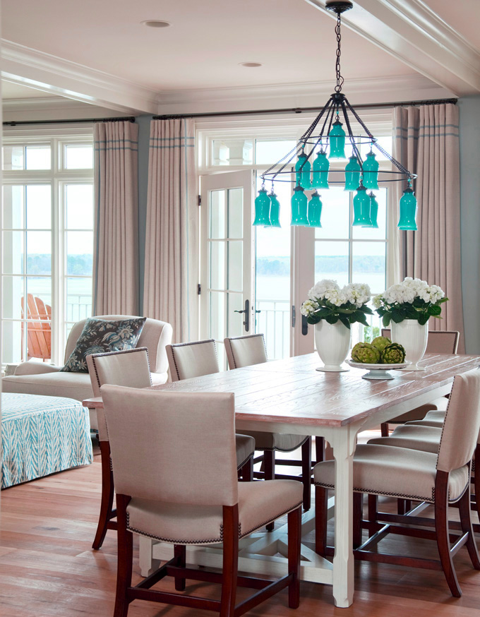Eine der beliebtesten Optionen ist blau, türkis und blau. Vielleicht bevorzugen die Menschen sie so oft, weil Blau und Blau den Himmel symbolisieren. Diese Farbtöne sind wirklich vielseitig: Sie passen in klassische, moderne und sehr konservative Innenräume.