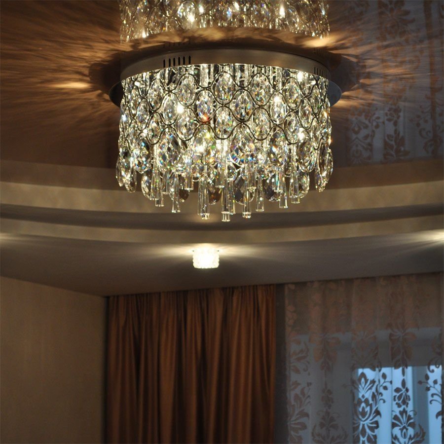 Runde Kronleuchter passen in Standard, einfache und minimalistische Räume (Küchen, Schlafzimmer, Wohnzimmer, Kinderzimmer). Ein eleganter Kronleuchter mit vielen Dekorationen und sogenannten "Behängen" wird am besten in einem luxuriösen, schicken und geräumigen Wohnzimmer oder einer Halle aussehen.
