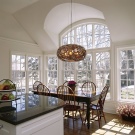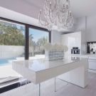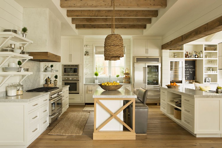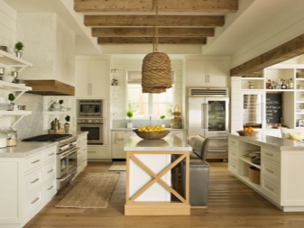 - Es ist wichtig, den Ort der Befestigung des Geräts zu wählen. Im Schlafzimmer sollte es vom Bett entfernt sein, vorzugsweise in der Küche über dem Arbeitsbereich. Für die Zonierung des Raumes müssen Sie eine helle und massive Lampe wählen, die sich vor dem Hintergrund der Punktbeleuchtung abhebt.