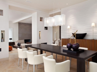 - Es ist notwendig, die Größe und Form des Raumes zu bestimmen. In einem kleinen Raum keine großen Kronleuchter installieren.Es wird ausreichen, um die Deckenleuchte von einer bescheidenen Größe zu hängen. Aber in einem großen Raum können Sie ein massives Modell verwenden, das das Licht sanft verteilt.