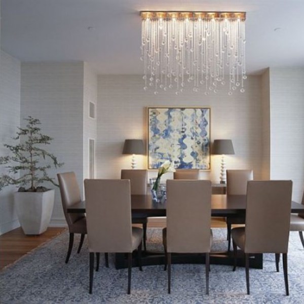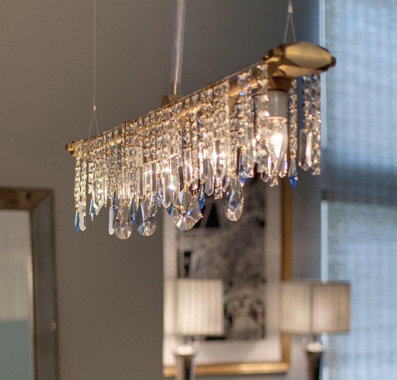 - Suspendiert - an einem Haken befestigt, der mit einer Kette, Schnur oder Schnur an der Decke befestigt ist. In der Regel können hängende Kronleuchter zur Veränderung ihrer Höhe eingestellt werden. So können Sie einfach und einfach die Beleuchtungsstärke im Raum ändern und sehr wichtige Orte hervorheben.
