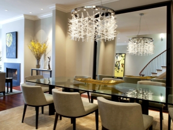 Auch bei der Wahl einer Lampe spielt die persönliche Vorliebe eine wichtige Rolle - ob Sie Deckenleuchten in Form von Blumen oder einfachen geometrischen Formen bevorzugen, ob Sie ein Novum-Unterstützer sind oder ob Sie etablierte Formen bevorzugen. Wählen Sie einen Kronleuchter im Raum, Es sollte sofort über die Anzahl der Leuchten im Raum entscheiden. Es ist besser, sofort einen kompletten Satz von Geräten zu kaufen, damit sie gut zueinander passen, wenn möglich - sie stammen aus derselben Serie.Obwohl es in modernen Innenarchitekturen erlaubt ist, Beleuchtungskörper verschiedener Art zu verwenden.