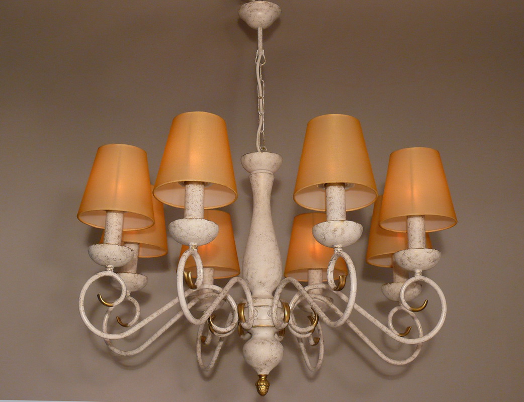 Sie können Modelle von Kronleuchtern kaufen, mit denen Sie die Beleuchtungsstärke ändern können. Dies geschieht entweder durch Teilen der Anzahl der Deckenleuchten an den Schaltern oder durch den Einbau eines Dimmers, mit dem die Leistung des Gerätes geregelt wird.