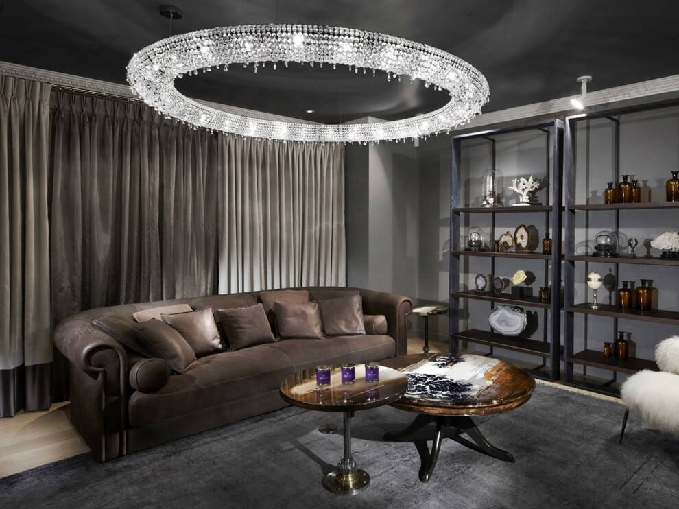 Die Größe des Raumes muss ebenfalls berücksichtigt werden. In einem kleinen Raum mit niedrigen Decken können keine großen Kronleuchter mit niedrigen hängenden Elementen installiert werden.