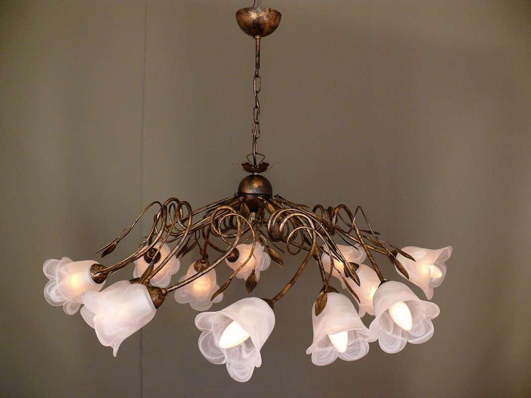 - "Georgia TL7480X-02AB-93234" - dvuhrozhkovskaya Kronleuchter. Ihre Decke ist in Spitze aus feinstem Metall eingewebt. Diese Lampe wird einen interessanten Schatten auf die Wände des Hauses werfen. Die Warenkosten betragen etwa 4.000 Rubel.