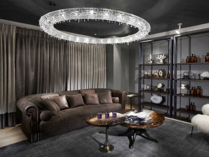 - Kristallring - Dies ist ein klassisches Modell.Seine Decke besteht aus einer Vielzahl von Kristallkristallen. Im eingeschalteten Zustand wird eine solche Lampe Sie mit Licht und Glanz erfreuen, aber auch im ausgeschalteten Zustand wird es eine sehr interessante Inneneinrichtung sein. Die Kosten betragen etwa 2000 Rubel.