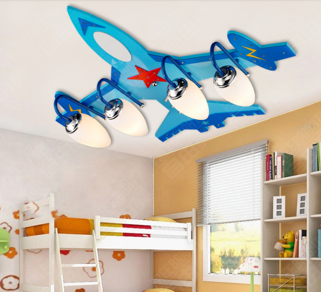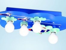 Kein einziger Junge auf der Welt wird sich weigern, sein eigenes Flugzeug zu haben. Sie können dem Kind gefallen, wenn Sie einen Kronleuchter in Form eines Miniaturkämpfers wählen. Durch die Schaffung von Beleuchtung ist dieser Kronleuchter mit mehreren Leuchten den klassischen Modellen nicht unterlegen, sieht aber viel interessanter und ungewöhnlicher aus.