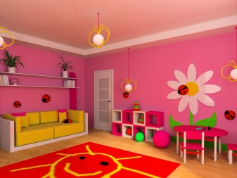 Denken Sie daran, dass verschiedene Farben das Nervensystem eines Kindes anders beeinflussen, deshalb ist Helligkeit am wichtigsten. Dass das Kind fröhlich und aktiv war, werden Kronleuchter in so gesättigten Tönen ausgegeben.