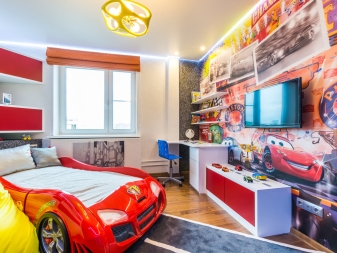 - Viele Jungs lieben den Cartoon "Cars". Wenn Ihr Kind einer von denen ist, wird er den Kronleuchter mit Autos lieben. Sie können sowohl aufgehängt als auch lackiert werden.