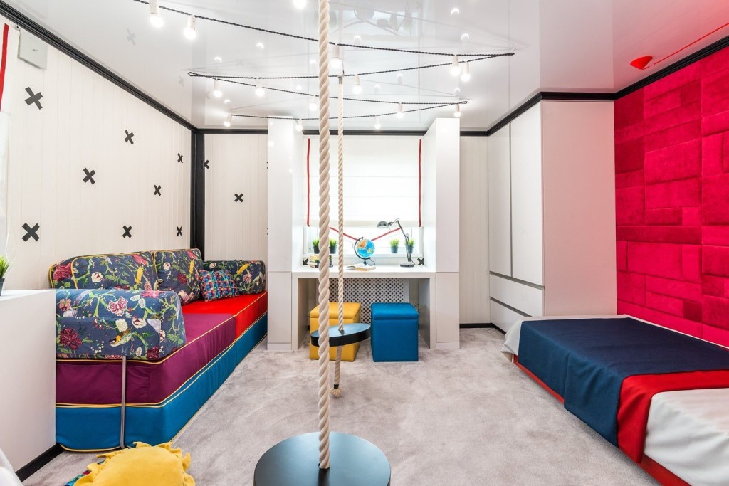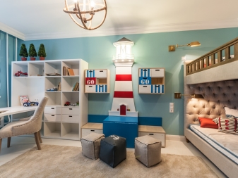 Und für Jungen und Mädchen gibt es viele verschiedene Deckenmodelle.Sie sind abhängig von der Größe des Raumes und der Höhe der Decke ausgewählt, es gibt verschiedene Konfigurationen und Abmessungen.