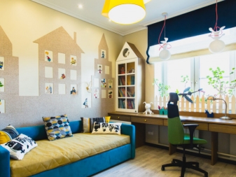 Es ist angemessener, in Bezug auf den Teenagerraum über Stil zu sprechen, weil es für das Kinderzimmer besser ist, sich um die Sicherheit, die Helligkeit und die absolute Übereinstimmung mit den Wünschen des Kindes zu kümmern. In der Pubertät versuchen Kinder, sich auszudrücken, indem sie einen Stil wählen, der ihre innere Welt vollständig widerspiegelt.