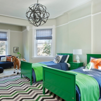Im Schlafzimmer für zwei Kinder empfiehlt es sich, eine Lampe zu kaufen, die dem Raum mehr entspricht, vor allem wenn die Meinungen der Kinder zum Modell geteilt sind. Dies wird helfen, keine von ihnen zu beleidigen. Eine interessante geschmiedete Konstruktion wird sicherlich beiden Jungs gefallen, auch wenn sie sie zunächst nicht erkennen.
