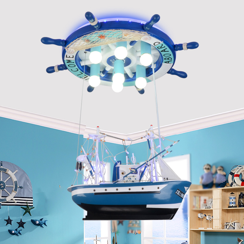 - Für ein Thema im Geiste von Abenteurern oder Piraten wird ein Kronleuchter in Form eines der charakteristischen Gegenstände passen: eine Truhe, eine Schriftrolle mit Karte, ein Schiff. Passend und Modelle mit gemalten Gegenständen: mit Papageien, Goldmünzen, Piratenflagge.