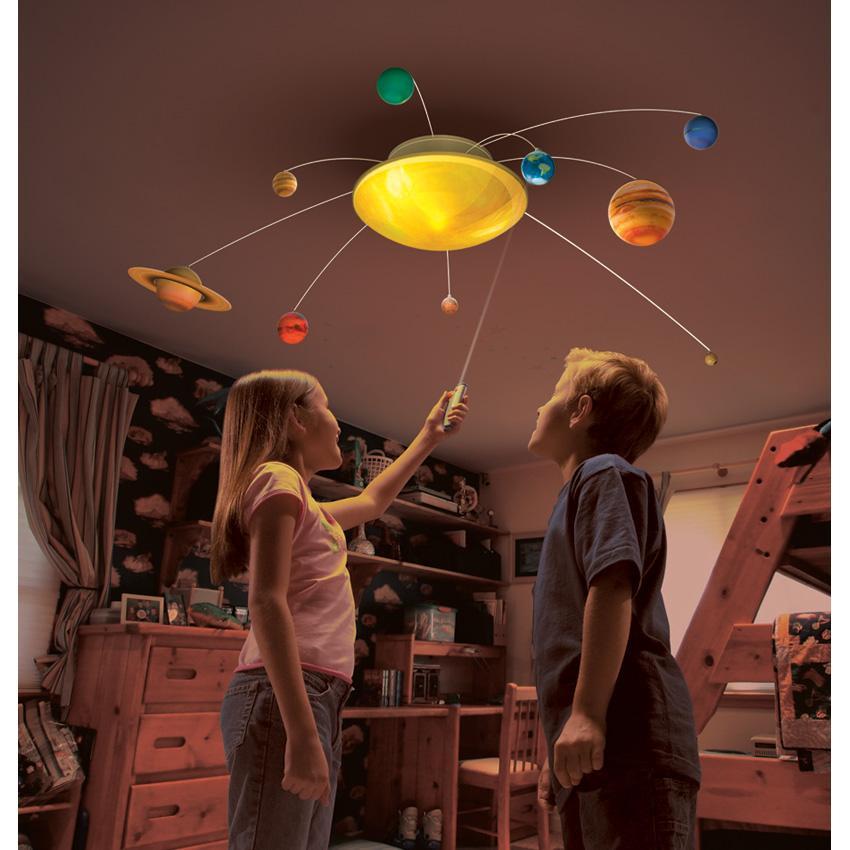 - Wenn der Raum unter dem Thema "Raum" stilisiert ist, anstelle eines Kronleuchters im klassischen Sinn, kann man ein Handy organisieren, bei dem die Sonne oder der Planet Erde das zentrale Beleuchtungselement ist und entweder die anderen Planeten des Sonnensystems oder der Mond rotieren.