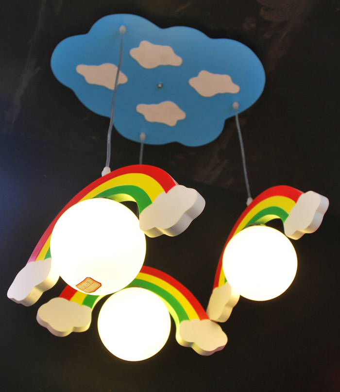 - Kronleuchter-Regenbogen wird analog zu den jungenhaften Modellen von Sportbällen gemacht. Regenbogen können Wolken, Feen, Vögel hinzufügen.