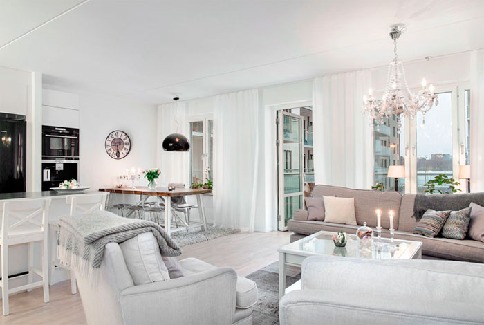 Die Lieblingsfarbe der skandinavischen Völker ist Weiß.. In ihrem Klima sind sie häufig mit trüben, regnerischen grauen Tagen konfrontiert, so dass weiße Möbel entworfen wurden, um ihr Zuhause heller und komfortabler zu machen. Weiße Kronleuchter im skandinavischen Stil können das Raumäußere heller und heller machen.
