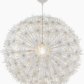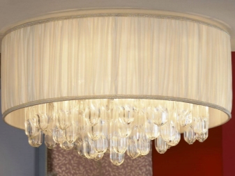 Plafonds bestehen aus Gewebe unterschiedlicher Dichte und Lichtdurchlässigkeit, mattiertem und transparentem Glas, Kristall, Holz, Kunststoff. Abhängig von der Art des Raums und der Art der Beleuchtung, die erstellt werden muss, wird auch das Material ausgewählt. Einige Materialien (Kunststoff, Holz, viele Arten von Stofflampenschirmen) können nicht für die Gestaltung von Hochleistungslampen verwendet werden, da sie schmelzen oder sich entzünden können. Achten Sie darauf, dies beim Kauf zu überprüfen.