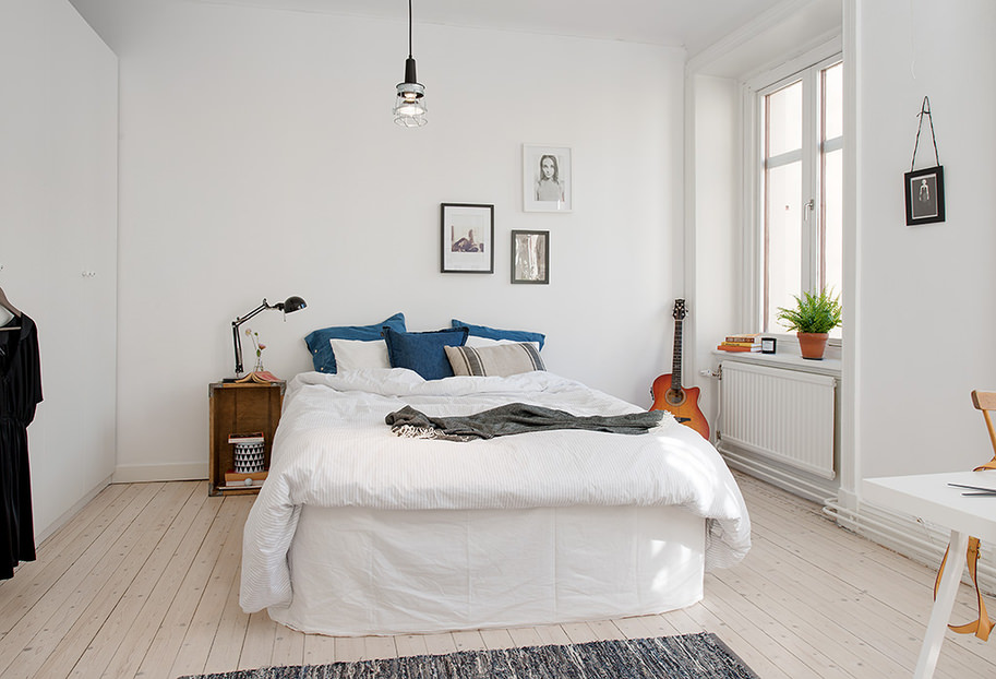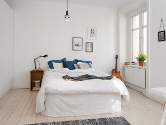 - Für Skandinavisch style fit minimalistischen Kronleuchtern, aber es ist am besten, gefälschte Modelle mit Imitation Kerzen anstelle von Glühbirnen zu bevorzugen. Es ist wünschenswert, dieses Design mit Kristallanhänger Tropfen zu ergänzen, um den dramatischen Effekt zu vertiefen. Eine Alternative ist die Wahl einer einfachen Weidenrattandecke. Es ist geeignet, wenn das Schlafzimmer eine eher kleine Fläche hat.