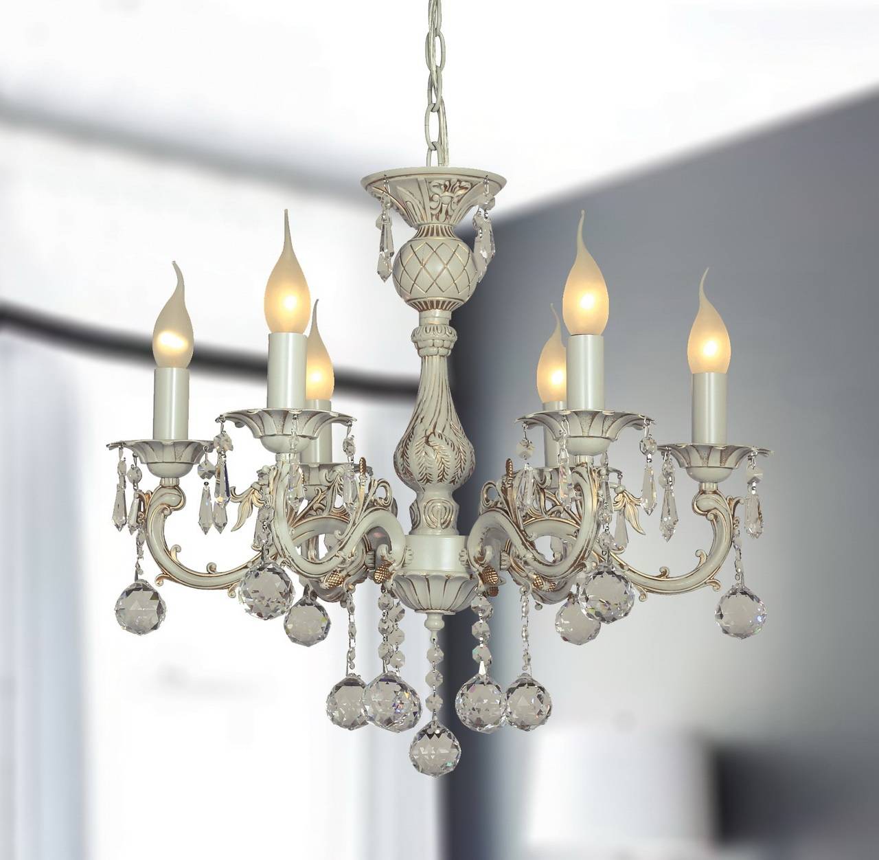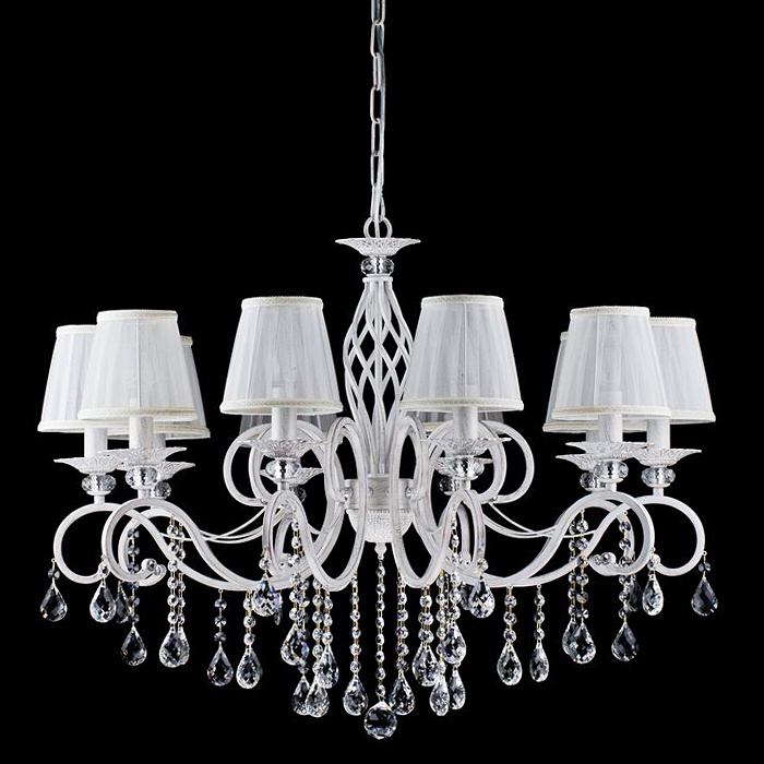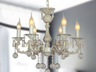 - Für Stil "Provence" Es werden Kronleuchter verwendet, die im Design den klassischen ähnlich sind, aber in Bezug auf die Farben absolut verschieden sind. Es ist notwendig, ein helles Blumenmuster für die Deckenlampen und eine weiße oder cremefarbene Farbe für die Basis zu wählen.